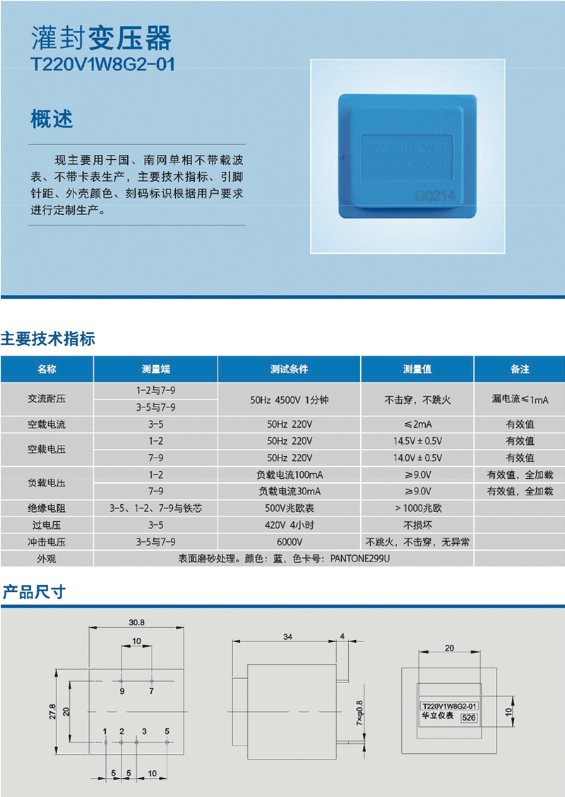 灌封變壓器 T220V1W8G2-01